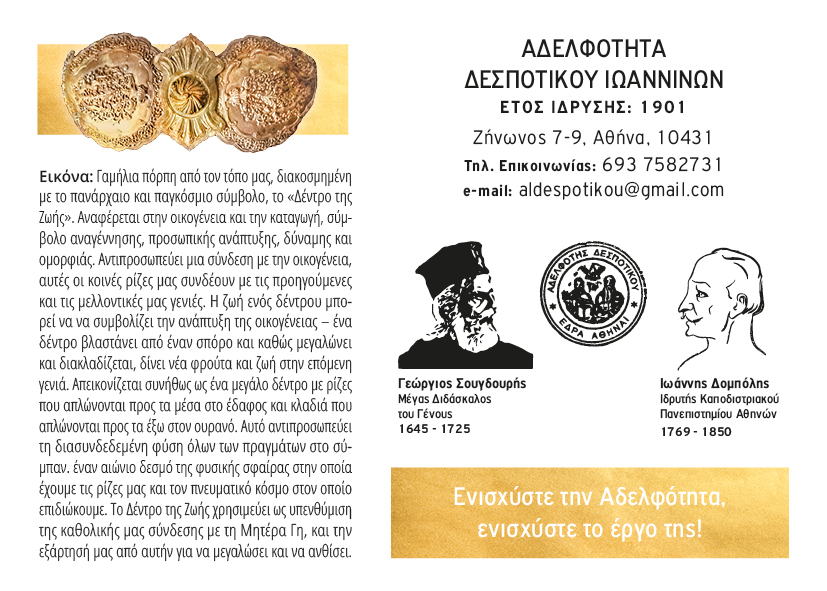 The accompanying 2023 card features a wedding fibula adorned with the Tree of Life, a symbol of origin, renewal, and generational continuity—an emblem of the community’s enduring bond with its roots and the spiritual realm.